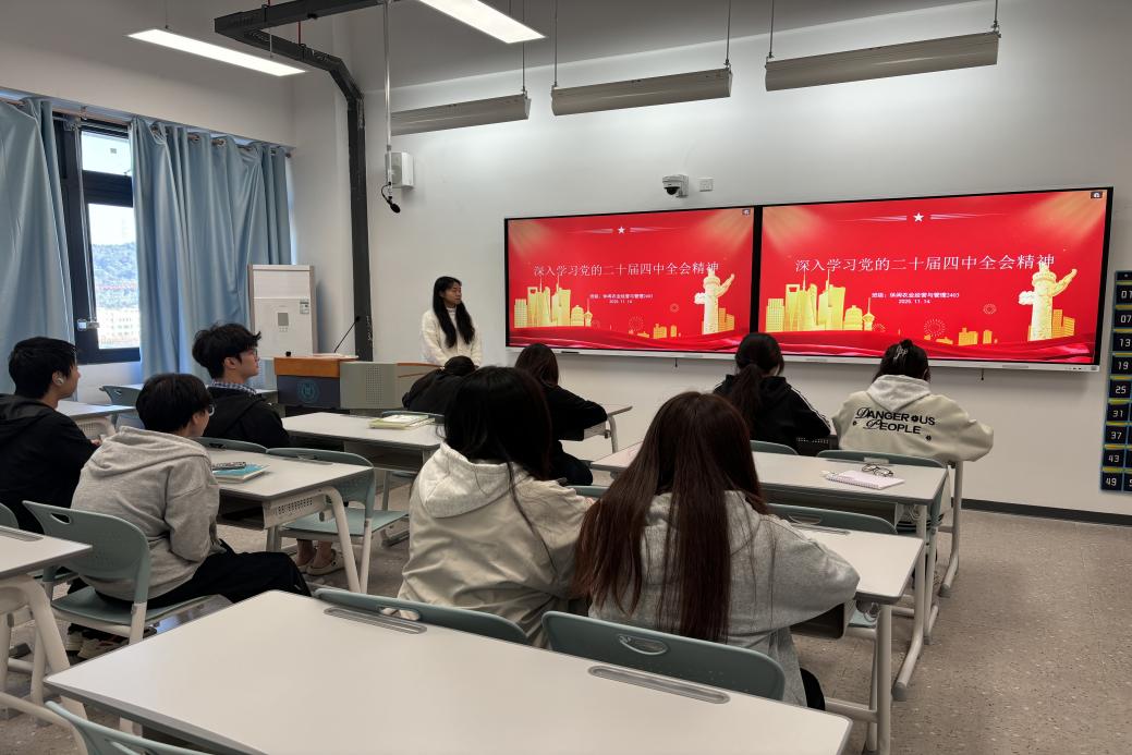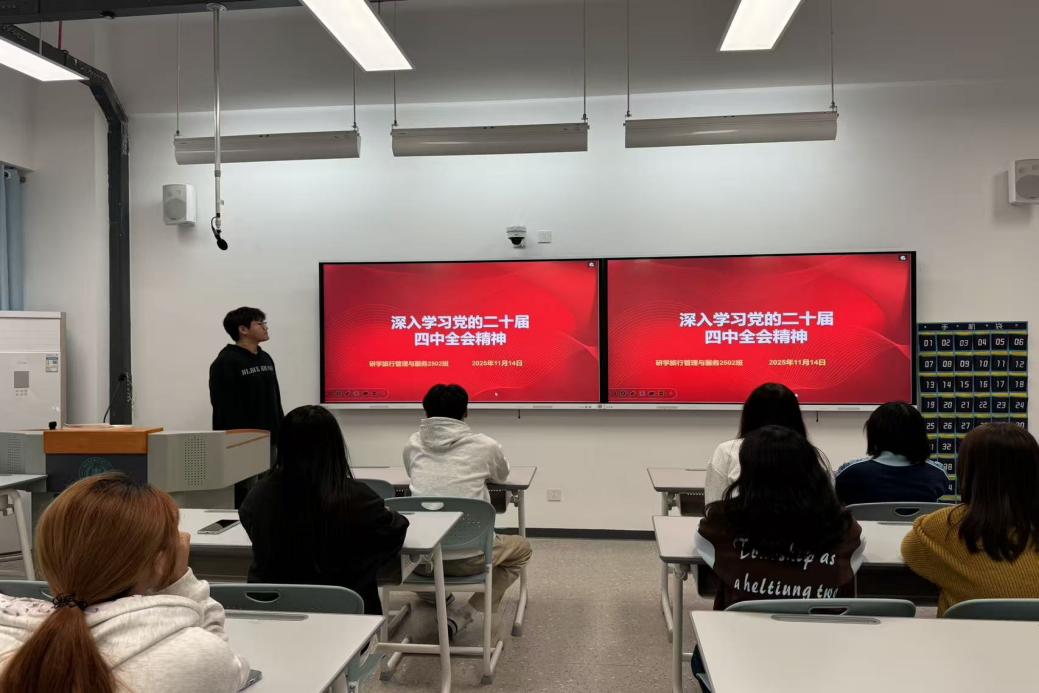 2025年11月,相思岭乡村旅游产业学院团总支组织各团支部开展了以“深入学习党的二十届四中全会精神”为主题的团日活动。各班团支书通过组织观看视频、PPT展示以及团员分享等方式开展活动。