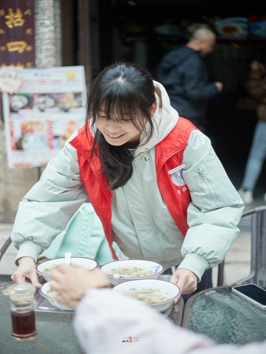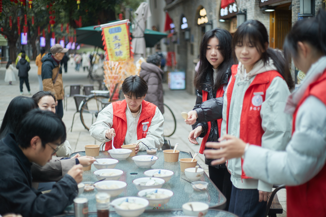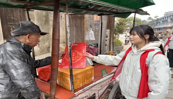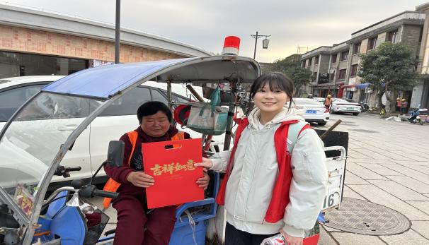 新春将至,实践团走进螺洲古镇,带着精心准备的春联,为古镇的父老乡亲送上新春祝福。学子们穿梭在古镇街巷,将一幅幅饱含美好寓意的春联送到乡亲手中,鲜红的春联映着淳朴的笑颜,吉祥的话语传递着浓浓温情。在一声声新春问候、一次次双手相递间,不仅让古镇街巷漾起满满的年味,更让闽都民俗的温暖扎根乡土,让青春身影成为古镇新春里一抹鲜活的亮色。