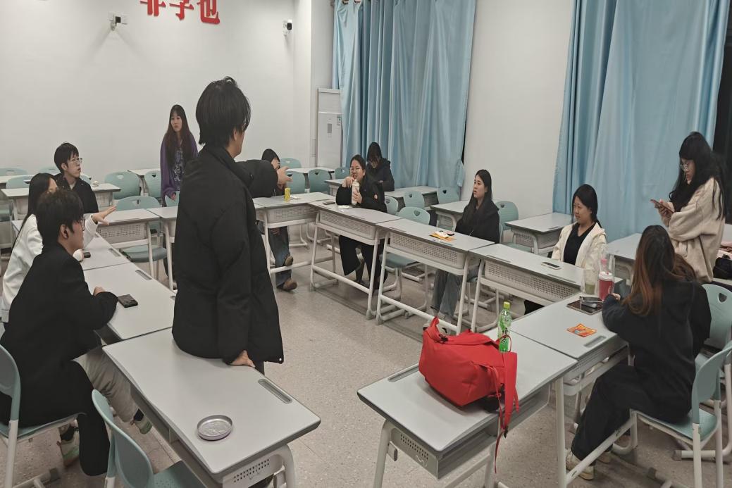 活动开始前,工作人员为同学们讲解游戏规则与注意事项,帮助新手快速熟悉玩法。活动全程划分多个游戏小组,于动科507、504教室同步开展角逐,每一轮游戏均由不同同学轮流担任法官,有条不紊地把控着游戏节奏。游戏过程中,“狼人”隐匿身份暗中布局,步步为营;“预言家”明察秋毫梳理线索,引领局势走向;“平民”则仔细倾听各方发言,谨慎斟酌每一次表态。每一轮的投票抉择、每一次的唇枪舌战,都迸发着思维交锋的火花。不少原本素不相识的同学,在游戏的交流与协作中迅速拉近距离、熟络起来。现场时而因精彩绝伦的推理引来阵阵掌声,时而因脑洞大开的“跳身份”桥段爆发出爽朗笑声,整体氛围轻松愉悦又不失热烈。